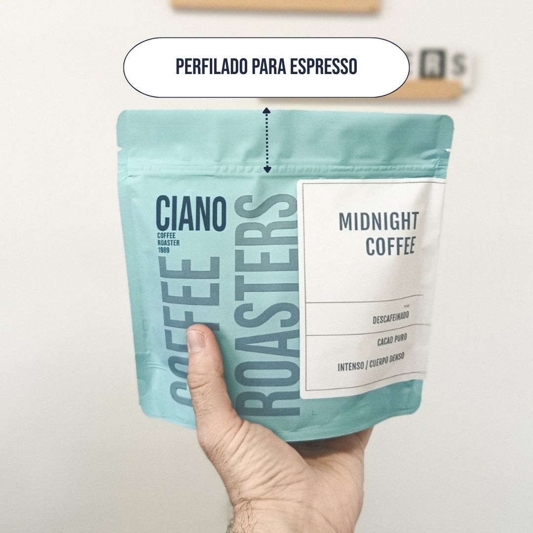 A Ciano Coffee prioritzem mètodes de descafeïnat que respectin la integritat del gra. Midnight Coffee ha estat sotmès a un procés de descafeïnat optimitzat, sense comprometre el perfil original. Sweet Dreams, per la seva banda, utilitza el procés de descafeïnat a l'aigua, que conserva de forma natural els compostos aromàtics del cafè sense afegir productes químics, mantenint així la seva essència colombiana.