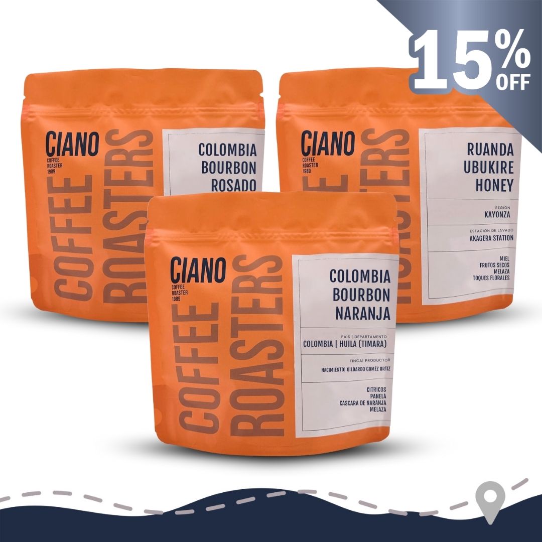 A Ciano Coffee sabem que cada tassa conta una història, i per això hem reunit tres autèntiques joies del cafè d'especialitat en el nostre pack Gotas Claras. Tres orígens diferents, tres varietats singulars i un mateix objectiu: oferir una experiència sensorial honesta, vibrant i plena de matisos. Des de la profunditat floral de Ruanda fins a l'efervescència cítrica de Colòmbia, aquest pack és un homenatge als cafès nets, expressius i perfectament equilibrats. Ideal per a qui gaudeix explorant nous horitzons de sabor i valora el treball ben fet en cada gra.