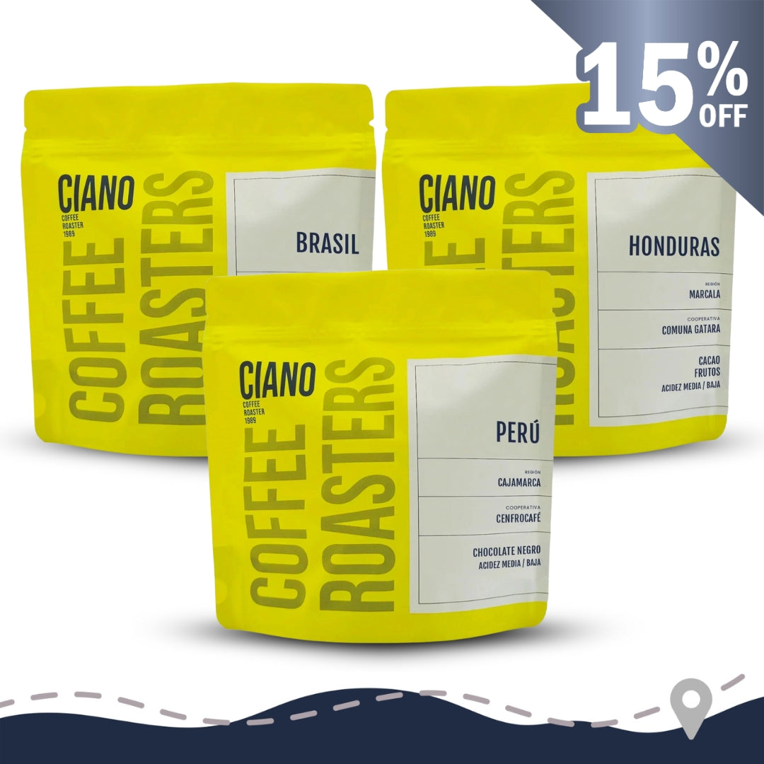 A Ciano Coffee, cada selecció que elaborem neix d'una convicció profunda: el cafè no és només sabor, és expressió, identitat i connexió. El Pack Tierra Tostada és un reflex d'aquesta idea. L'hem creat per celebrar la riquesa i la profunditat que pot oferir un cafè ben elaborat, ben torrat i ben seleccionat. No és un pack qualsevol: és un tribut als orígens que ens inspiren i a la calidesa que busquem compartir en cada tassa. Hem reunit tres cafès excepcionals —Brasil Cerrado Mineiro, Perú Cajamarca i Hondures Marcala— perquè junts representen l'essència del que entenem per un cafè amb caràcter: dolçor natural, cos rodó, acidesa equilibrada i un perfil net que evoluciona sense estridències. Cadascun aporta el seu toc: el cos i la xocolata del Brasil, l'elegància aromàtica del Perú i la senzillesa honesta d'Hondures. Són cafès diferents, sí, però s'entenen entre ells. Dialoguen. Es potencien. I això és el que fa d'aquesta barreja alguna cosa especial. Tierra Tostada no busca sorprendre amb rareses ni competir en complexitat tècnica. La seva intenció és una altra: oferir una experiència sòlida, saborosa i coherent, tant per a aquells que ja coneixen el cafè d'especialitat com per a aquells que volen descobrir-lo des d'una perspectiva amable i propera. Aquesta selecció està pensada per acompanyar, per reconfortar i per mostrar que l'autèntic també pot ser accessible i emocionant. A Ciano Coffee creiem que el millor cafè no és necessàriament el més exòtic, sinó el que es treballa amb respecte i coherència des de la finca fins a la tassa. Per això, aquest pack parla de compromís: amb el productor, amb el procés, amb el torrat i amb qui es pren el temps per gaudir-lo. Cada cafè que forma Tierra Tostada ha estat escollit perquè té alguna cosa a explicar, i junts, construeixen una història que sap a llar, a calidesa i a bon cafè. Tierra Tostada és més que una selecció: és una declaració d'intencions. És un cafè per assaborir, compartir i recordar.